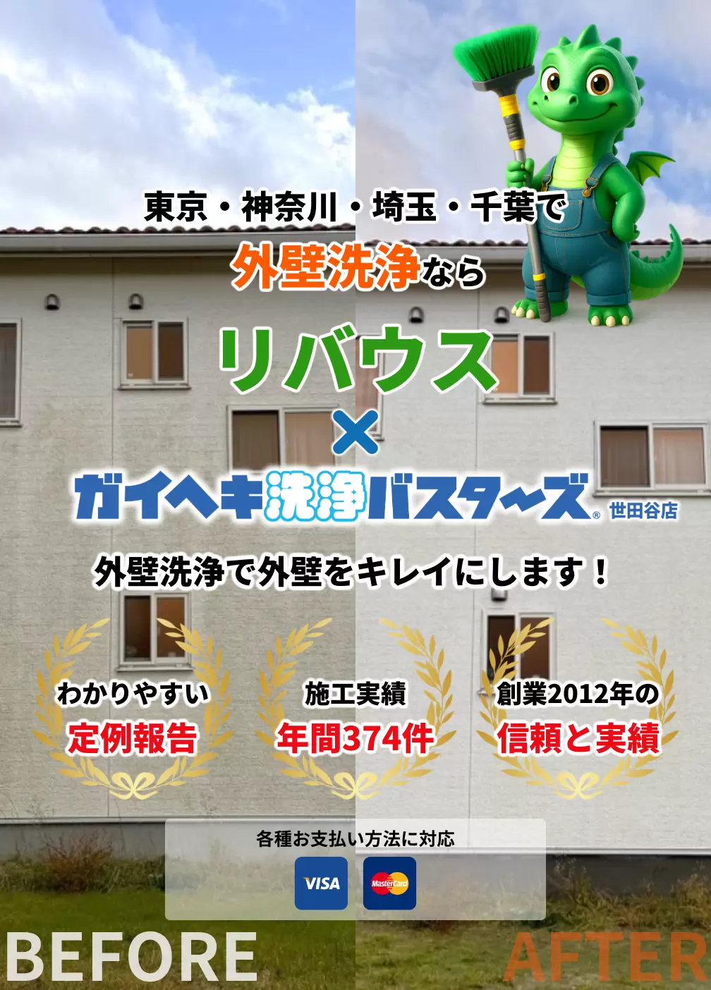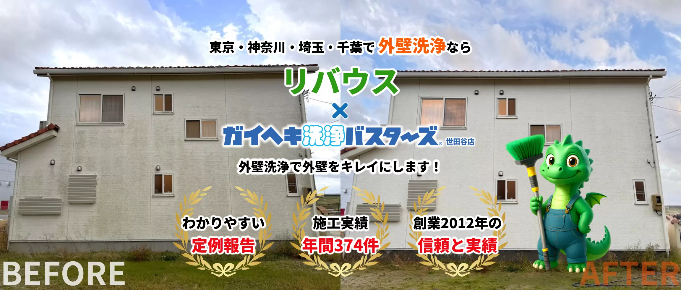 リバウスでは戸建て・集合住宅などの外壁洗浄や塗装、防水工事などの総合リフォーム事業を展開し、東京・神奈川・埼玉・千葉を中心に工事を手掛けております。地域の皆さまに愛されて10周年を突破することができました。一般建設業許可も10年以上取得しておりこれからも信頼できる事業者として地域に貢献いたします。