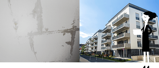 外壁表⾯のカビ・コケ・藻の発⽣は、建物の美観を⼤きく損ない、劣化や素地の劣化を早めますので、⽐較的近いうちに診断をした⽅が良いサインといえます。